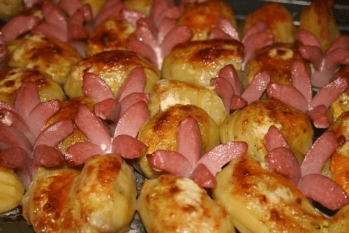 Картофель запеченный с сосисками