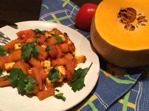 Тыква с помидорами и адыгейским сыром