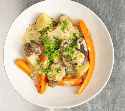 Томленая баранина с овощами — изысканное блюдо французской кухни, вдохновленное традициями провинциальных гастрономических изысков. Медленное приготовление позволяет мясу раскрыть свою мягкость, а овощам — напитаться насыщенным вкусом бульона, вина и ароматных специй. Баранина приобретает нежную текстуру и тонкий пряный аромат тимьяна, а сливочный соус с лимонной ноткой добавляет ей пикантности. Это блюдо идеально подходит для уютного семейного ужина или торжественного застолья, а его вкус раскрывается особенно ярко с бокалом белого вина. Томленая баранина сочетает в себе тепло домашней кухни и утонченность французской гастрономии, делая каждую трапезу незабываемой.