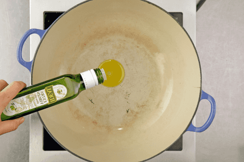 Разогреть 1 столовую ложку оливкового масла в глубокой сковороде с плотно прилегающей крышкой.