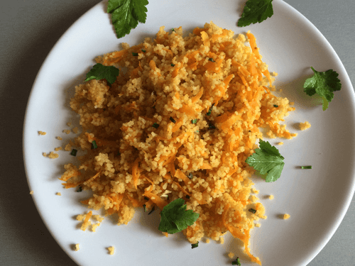 Добавить кускус, перемешать, плотно закрыть крышкой и выключить огонь. Дать кускусу настояться 5 минут, еще раз перемешать и можно подавать!