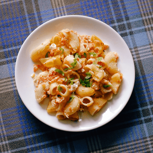Макароны, запеченные с помидорами и брынзой