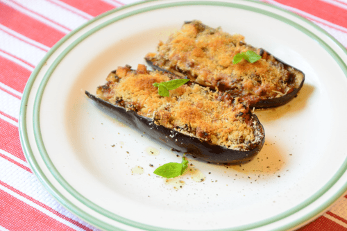 Баклажаны, фаршированные ветчиной и копченым сыром, – это изысканное блюдо европейской кухни, сочетающее нежность запеченных овощей с насыщенным вкусом копченостей и ароматных трав. История подобных фаршированных блюд уходит корнями в средневековую Европу, где использовались сезонные продукты для создания сытных и вкусных блюд. В этом рецепте мягкая мякоть баклажана обжаривается с луком, а затем смешивается с ветчиной, копченым сыром скаморца, базиликом и петрушкой, придающими свежие нотки. В завершение посыпка из сухарей и пармезана формирует аппетитную корочку, добавляя текстуру. Запекание придаёт блюду выразительный аромат и гармонию вкусов. Идеально подается как основное блюдо или аппетитная закуска, сочетаясь с бокалом вина и свежими овощами. Такое угощение – это праздник вкуса, который согревает и радует.