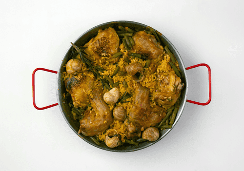 Паэлья «Валенсиана» — это традиционное испанское блюдо, родом из солнечной Валенсии. Густой аромат шафрана, свежий розмарин и богатый вкус курицы и кролика делают ее настоящим символом средиземноморской кухни. Паэлья имеет насыщенный вкус, в котором сочетаются нежные ноты мяса, сладость помидоров и землистый привкус фасоли. В этой версии блюда используются улитки, которые придают ему особенный характер. Паэлья традиционно готовится в широкой сковороде — паэльере, а процесс приготовления требует точности и терпения. Ее часто готовят для семейных застолий и праздников, так как она объединяет людей за одним столом. Это не просто еда — это культурное наследие, передаваемое из поколения в поколение.