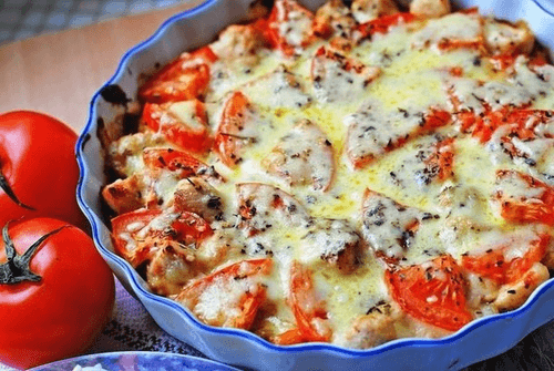 Куриное филе запеченное с овощами и сыром