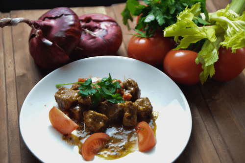Тушеная говядина с овощами и панчеттой в карри – это изысканное блюдо, вобравшее в себя традиции европейской кухни с нотками восточных специй. История его происхождения восходит к временам, когда европейские повара начали экспериментировать с индийскими специями, придавая классическим мясным блюдам новый, насыщенный вкус. Нежное мясо, пропитанное ароматами карри, сочетается с мягкостью тушеных овощей и пикантностью панчетты, создавая гармоничную вкусовую палитру. Белое вино добавляет утонченность, а свежая петрушка завершает композицию легкой зеленью. Это блюдо идеально подходит для уютных семейных ужинов или торжественных вечеров, а его насыщенный вкус особенно раскрывается в сопровождении бокала легкого вина и свежего хлеба.