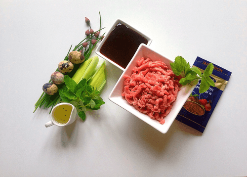 Ставим варить перепелиные яйца и начинаем замешивать фарш.