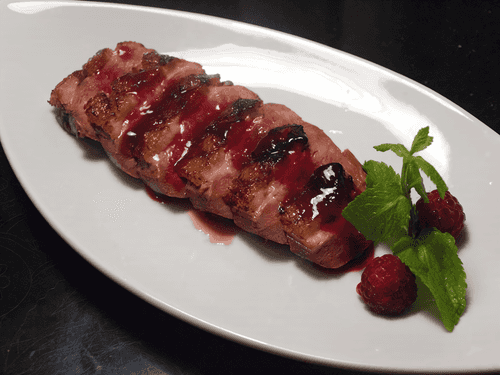 Украсить кисло-сладким яблоком и оставшимися ягодами. На гарнир можно подать печеные овощи.