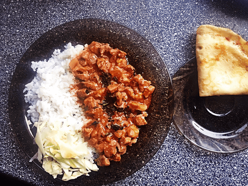 Через 30 мин открываем крышку, кладем выдавленный чеснок и специи (паприку, чили, лавровый лист, соль, перец), добавляем еще чуток воды и тушим 10 мин.