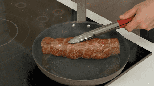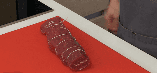 Перевязать вырезку кулинарной нитью по всей длине так, чтобы она превратилась в аккуратную ровную колбаску.