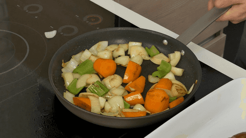 На том же масле слегка обжарить овощи