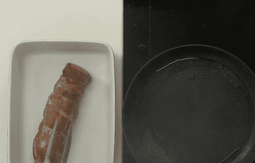 На растительном масле в сильно разогретой сковороде обжарить вырезку до характерного коричневого цвета и приятного жареного запаха.