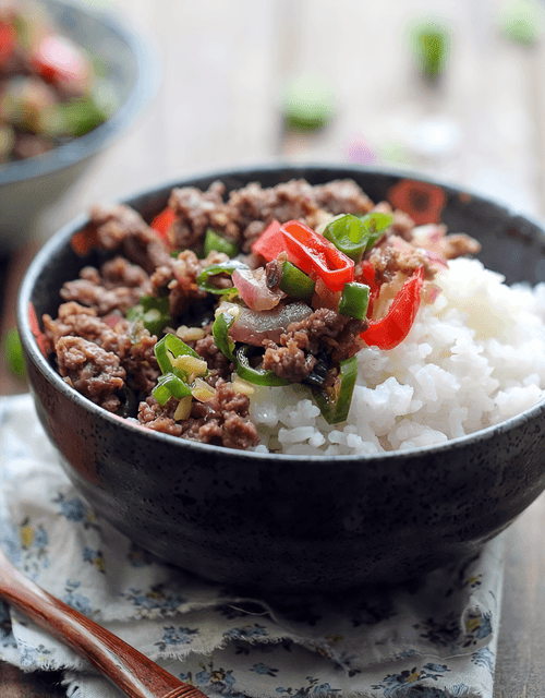Рис с пряной говядиной — это ароматное и насыщенное блюдо, корни которого уходят в традиции европейской кухни, но с восточными нотками специй. Его вкусовая палитра сложна и гармонична: нежный рис, пикантный фарш, согревающая пряность чили и освежающий лайм. Это блюдо сочетает в себе мягкость и остроту, создавая незабываемый гастрономический опыт. Кинза придаёт свежесть и завершённость композиции, а яйца добавляют нежность. Оно идеально подходит как для уютного семейного ужина, так и для энергичного обеда, даря ощущение теплоты и насыщенности. Готовится быстро, а вкусовое сочетание может легко адаптироваться под личные предпочтения, добавляя новые оттенки вкуса. Это не просто еда, а маленькое кулинарное приключение, оживляющее вкусовые рецепторы.
