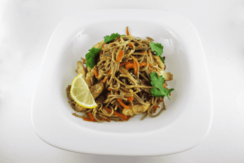 Гречневая лапша с грибами шиитаке и курицей