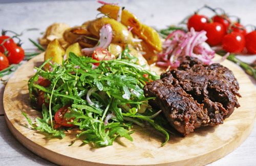 Рибай с гарниром из рукколы