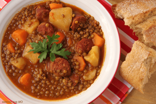 Чечевица с чоризо — это блюдо, воплощающее ароматную гармонию средиземноморской кухни. Его корни уходят в испанскую гастрономию, где сочетание пикантной колбасы чоризо и нежной чечевицы стало символом уютных семейных ужинов. Густая, насыщенная текстура блюда обогащена вкусом сладкого лука, зелёного перца и томатов, которые придают ему мягкость и легкую кислинку. Черный перец и пиментона добавляют теплую пряность, а лавровый лист раскрывает свой тонкий аромат в процессе варки. Это сытное и согревающее угощение идеально подходит для прохладных вечеров, когда хочется чего-то питательного и насыщенного. Можно подать его как самостоятельное блюдо или дополнить свежим хлебом, который подчеркнет глубину вкуса. Чечевица с чоризо не только вкусна, но и полезна, насыщая организм белками и клетчаткой.
