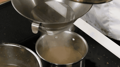 Соус процедить, добавить соль, белый перец и продолжить уваривать.