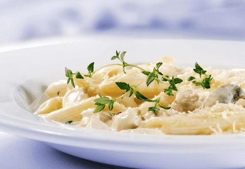 После добавить сливки, довести до кипения на слабом огне, при этом постоянно помешивая.