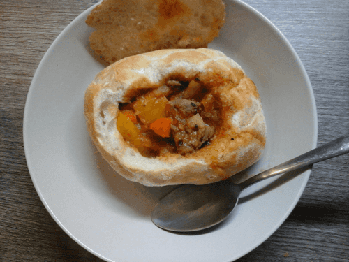 Суп-гуляш в хлебе — это истинное воплощение венгерской кухни, где насыщенный вкус и аромат пряностей соединяются с теплотой домашнего очага. Этот густой, пряный суп, приготовленный на основе нежного тушеного мяса, картофеля, моркови и сладкого перца, вобрал в себя все богатство вкусов Средней Европы. Аромат чеснока и томатов придаёт ему особую глубину, а свежая петрушка добавляет легкости. Главная особенность блюда — подача в хрустящей хлебной булочке, которая впитывает богатый бульон, превращаясь в нежную и пропитанную вкусами основу. Такое блюдо согревает в прохладные вечера, удивляет гостей и делает обычный обед праздничным. Оно идеально для тех, кто хочет почувствовать истинный дух Венгрии, наслаждаясь его насыщенными и уютными вкусами.