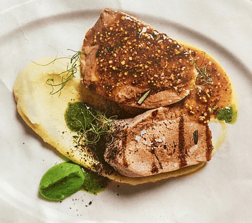 Телячий язык с пюре из сельдерея