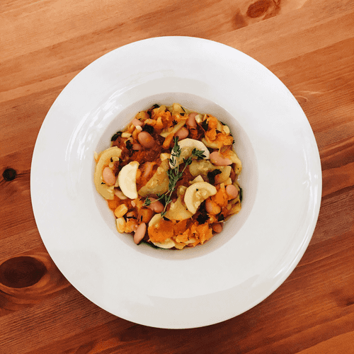 Осеннее рагу с фасолью и тыквой — это теплое, утешающее блюдо французской кухни, воплощающее уют и сезонное богатство. Вдохновленное деревенскими традициями, оно объединяет сладость тыквы, нежность кабачков и насыщенный вкус белой фасоли. Легкие лимонные нотки и аромат свежего тимьяна подчеркивают баланс свежести и глубины вкуса. Это рагу идеально подходит для холодных вечеров, когда хочется согреться чем-то домашним. Оно прекрасно сочетается с крупами или хрустящими тостами, делая прием пищи сытным и питательным. Простота приготовления делает его отличным выбором для уютных семейных ужинов или ужина в кругу друзей. Это больше, чем просто блюдо — это маленькое путешествие во французскую гастрономическую культуру, где свежие ингредиенты раскрывают свое волшебство в каждом кусочке.