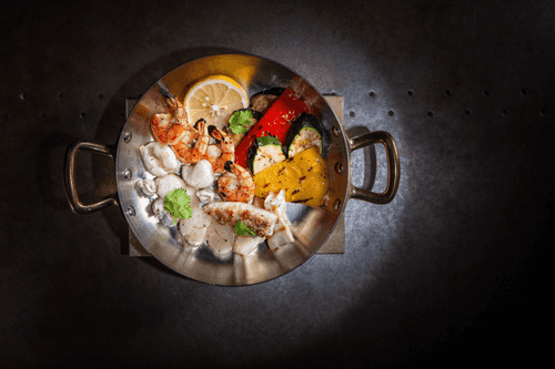 Средиземноморская кухня славится своими яркими, свежими вкусами и простотой приготовления. Морепродукты с овощами на гриле — это истинное отражение этого кулинарного наследия. В этом блюде сочетаются нежные осьминог, каракатица, креветки и гребешки, которые, обжаренные на березовых углях, приобретают легкий дымный аромат. Овощи — сладкий перец, цукини и баклажаны — дополняют блюдо своей насыщенной текстурой, а сливочное масло и конфи придают ему бархатистость. Подача в разогретой медной сковороде с дольками лимона и свежей зеленью делает это блюдо не только визуально привлекательным, но и еще более изысканным на вкус. Идеальный выбор для романтического ужина на побережье или праздничного застолья под открытым небом.