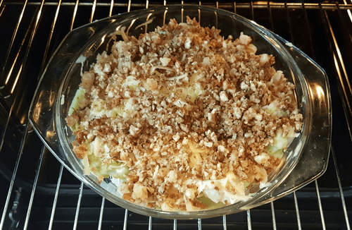 Залить ее нашим соусом, посыпать сверху оставшимся сыром.