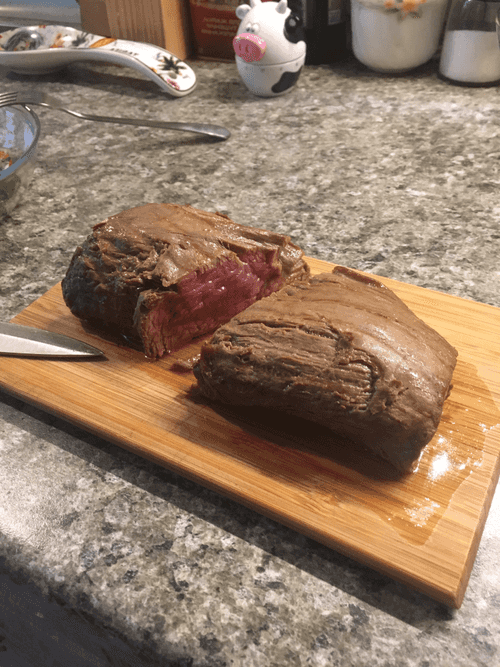Ростбиф из говядины – классическое блюдо британской кухни, символ сытных воскресных обедов. Сочные куски говяжьей вырезки, маринованные в ароматной смеси соевого соуса, чеснока и оливкового масла, приобретают насыщенный вкус с легкими восточными нотками. Обжарка на сковороде создает золотистую корочку, а последующее запекание в фольге сохраняет сочность мяса. После короткого отдыха ростбиф становится нежным, тающим во рту. Это блюдо подают горячим с гарнирами или охлажденным – в качестве основного ингредиента для сэндвичей и закусок. Его богатый мясной вкус идеально сочетается с горчичным соусом или хреном, а традиционный британский йоркширский пудинг делает трапезу по-настоящему аутентичной.