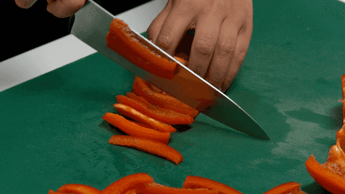 Очистить перец от семян и перегородок, нарезать длинными брусочками. Чернослив замочить в воде.