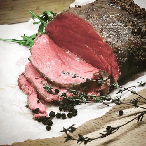 Ростбиф средней прожарки — классическое блюдо британской кухни, восходящее к традициям старинных английских обедов. Сочный, ароматный, с аппетитной корочкой, этот мясной шедевр радует гурманов глубиной вкуса и нежной текстурой. Говяжья вырезка, обжаренная до золотистого оттенка, а затем доведенная до совершенства в духовке, приобретает насыщенный мясной вкус с легкими нотками горчицы и черного перца. После отдыха ростбиф становится особенно мягким, а его соки равномерно распределяются, делая каждый ломтик насыщенным и сбалансированным. Блюдо универсально: его подают горячим с гарниром или охлажденным, нарезанным тонкими ломтиками для сэндвичей и закусок. Ростбиф — это элегантность простых ингредиентов, воплощение традиций и удовольствие от каждой прожаренной до идеала порции.