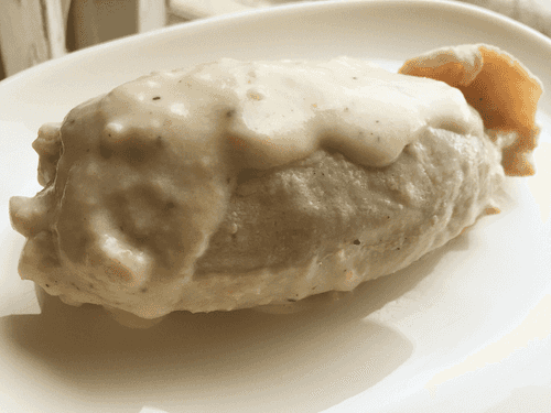 Полить кальмаров сверху самодельным соусом бешамель.