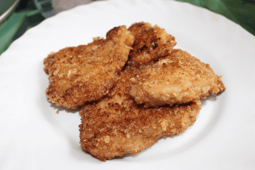 Замаринованные полуфабрикаты обвалить в яйце, затем в муке (повторить процедуру два раза).