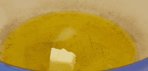В глубокой сковороде или кастрюле разогреть сливочное и оливковое масло.