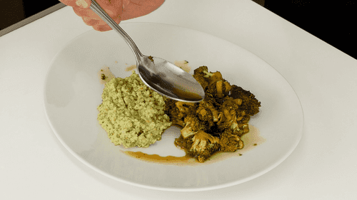 Брокколи прекрасно вписывается в разнообразные азиатские кулинарные традиции, и это блюдо — яркое тому подтверждение. Основой его является гармония двух различных соусов. Первый соус, состоящий из наршараба, свежей мяты, кинзы, сока лайма и лимона, уксуса и рыбного соуса, используется для обжаривания капусты. Второй соус, в который входят миндаль, лимон, мята, оливковое масло и кленовый сироп, подается к готовому блюду.