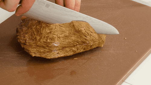 Процедить бульон, мясо нарезать кубиком со стороной 3 сантиметра.
