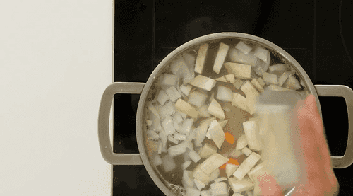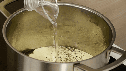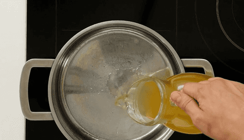 500 мл бульона снова поставить на огонь и уварить его на половину.