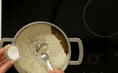 Добавить уксус и перемешать. Попробовать и посолить еще, если необходимо.