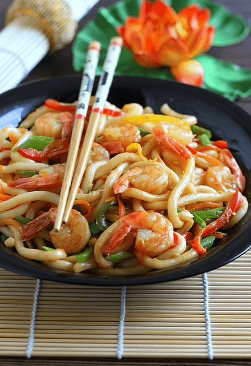 Лапша с креветками в соусе из авокадо
