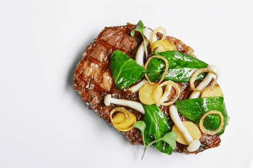 Рибай с пикантным соусом с перцем — истинное наслаждение австралийской кухни, где гармонично сочетаются нежность мяса и пряные акценты. Исторически, рибай стал популярным выбором среди гурманов благодаря его насыщенному вкусу и мраморной текстуре. Готовится он с легкой солью, а затем покрывается перечным соусом, который добавляет остроту и глубину. Дополняют блюдо грибы шимеджи, приготовленные по технологии шпината, и жареный на топленом масле мини-картофель, придающий ему нежную текстуру и легкую сладость. Завершающий штрих — кресс-салат и лук фри, придающие свежесть и хруст. Это блюдо идеально сочетается с бокалом красного вина, подчеркивая его насыщенные вкусовые оттенки и создавая атмосферу истинного гастрономического удовольствия.