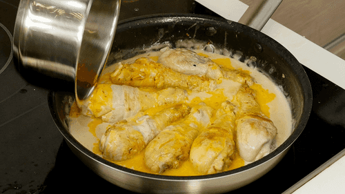 Куриные голени с шафраном, оливками и горошком — изысканное блюдо европейской кухни, восходящее к традициям средиземноморских народов. Ароматный шафран придает соусу глубину вкуса и золотистый оттенок, а кокосовое молоко смягчает кислотность лимона, создавая гармонию вкусов. Нежное мясо курицы пропитывается специями, а маслины добавляют легкую пикантность. Зеленый горошек придает блюду свежесть и яркость, а кинза завершает картину своей пряной ноткой. Это блюдо идеально подходит для уютного ужина или праздничного стола, даря теплые ароматы экзотических специй и насыщенные вкусовые ощущения. Подавать рекомендуется с легким белым вином и рассыпчатым рисом, чтобы подчеркнуть богатство его вкусовой палитры.
