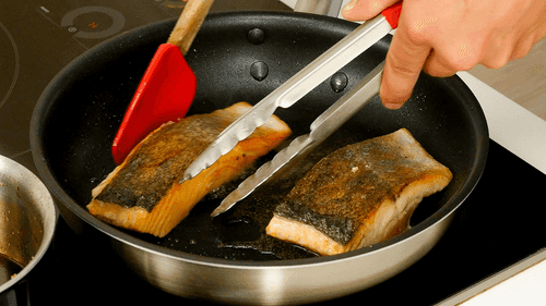 Филе лосося разрезать на порционные стейки, посолить, поперчить и обмазать оливковым маслом. Обжарить их на оливковом масле для жарки по минуте с каждой стороны. Затем кисточкой обмазать стейки заправкой терияки и обжарить еще раз по минуте с каждой стороны.