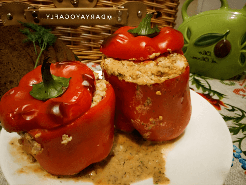 Готовим перцы в духовке 15 - 30 минут (зависит от того насколько вы любите готовность перца) при температуре 200 градусов, накрыв фольгой.