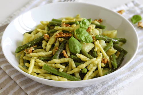Паста с песто и картофелем — яркое блюдо итальянской кухни, вдохновленное традициями Генуи, родины знаменитого соуса песто. Нежная пенне ригате, сваренная в воде от картофеля, впитывает аромат землистого картофеля и свежей зелени. Пикантное песто на основе петрушки, чеснока и кедровых орехов, обогащенное тертым сыром пекорино и оливковым маслом, придает блюду насыщенный вкус с ореховыми и травяными нотками. Фасоль и чабер добавляют свежесть и легкую пряность, а подрумяненное сливочное масло обволакивает все ингредиенты мягкостью. Блюдо идеально для уютного ужина в итальянском стиле, особенно в сочетании с бокалом белого вина. Гармония текстур и вкусов делает пасту с песто и картофелем не просто трапезой, а настоящим гастрономическим путешествием в сердце Италии.