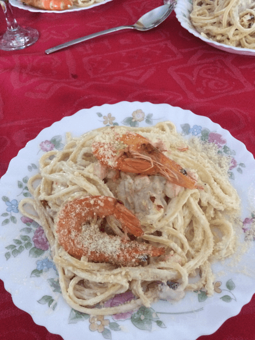 Спагетти с креветками в сливочно-соевым соусе