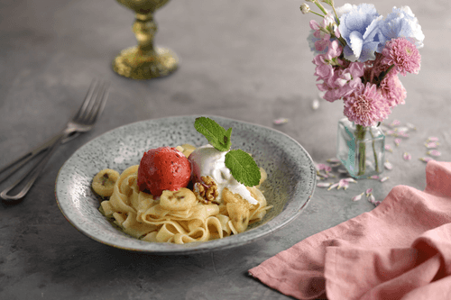 Паста феттучини с джелато – необычное сочетание горячего и холодного, сладкого и соленого, которое удивляет и восхищает. Этот рецепт – игра контрастов, где нежная паста аль денте соединяется с карамелизированными бананами, создавая бархатистую текстуру с фруктовой сладостью. Финальный штрих – шарик мороженого и сорбета, которые плавятся, превращая блюдо в десертный шедевр. Итальянская кухня славится своей смелостью в сочетании вкусов, и это блюдо – яркий пример гастрономической креативности. Его подача эффектна – украшение свежим базиликом добавляет ароматную нотку, делая каждую вилку восхитительно освежающей. Паста феттучини с джелато идеально подходит для завершения романтического ужина или как десерт для настоящих гурманов, готовых к новым кулинарным открытиям.
