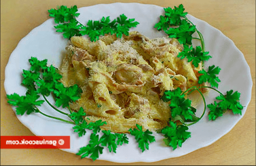 Макароны пенне с прошутто в сливочном соусе