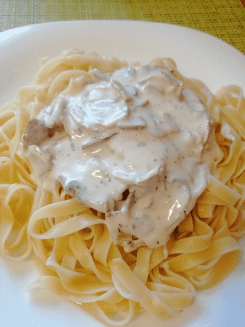 Паста с шампиньонами и беконом в сливочном соусе