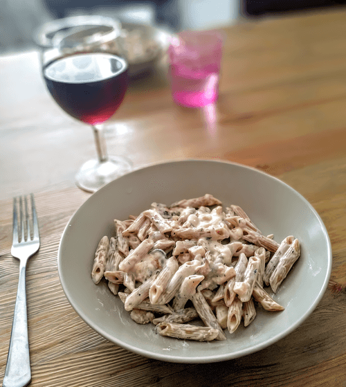 В сковороду вылить сливки, слегка уменьшить огонь, хорошо перемешать и потушить минут 5–10, пока варится паста, чтобы соус слегка загустел. Попробовать, при необходимости добавить соль.