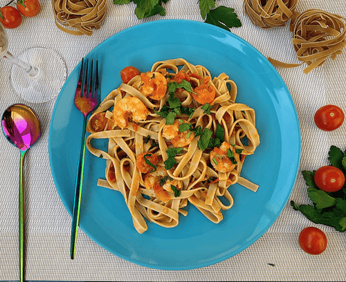 Тальятелле в томатном соусе с креветками
