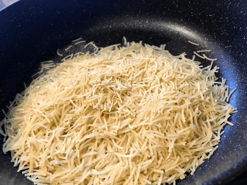 Высыпать макароны и перемешать, чтобы все макароны были в масле.